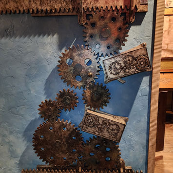 6 items -Return the missing pieces to unlock the device, rotate the gears to move the rails, and unblock the door.