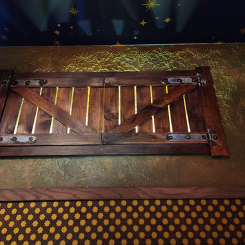 Two decorative wooden windows with an LED connections.